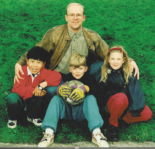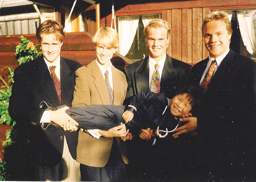 Ungjenta Allison White (med rød "hette" nedenfor Øyvind) er datter av Barbara og Bruce White, familien som Marius og Øyvind bodde hos i Washington.