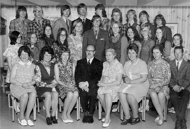 Foran fra venstre : kokk Magna Elisabeth Dedriksen - assistent Nelly Høgberg - lærer Kari Desserud - bestyrer Per Sigmund Bjørndal -
