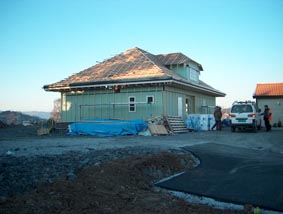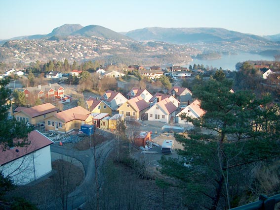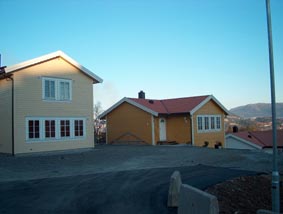 Fra inngangen til Karlslia, og opp til vårt hus.