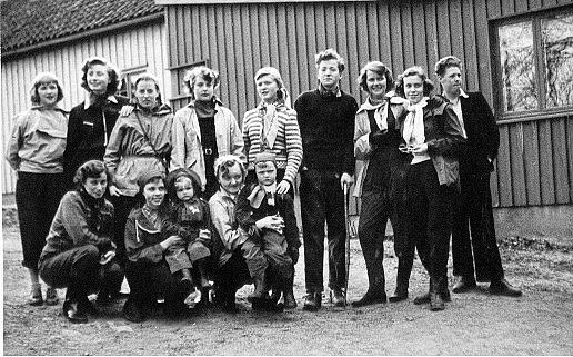 Foran fra venstre : Ukjent - Oddny Eidissen (gift Kristiansen) - Berith Haugland