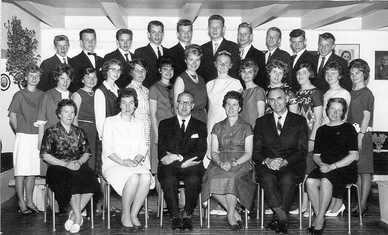 Nederst til venstre:kokk Kari Kvam - lærerinne Inger Bjørndal - bestyrer Per Sigmund Bjørndal -