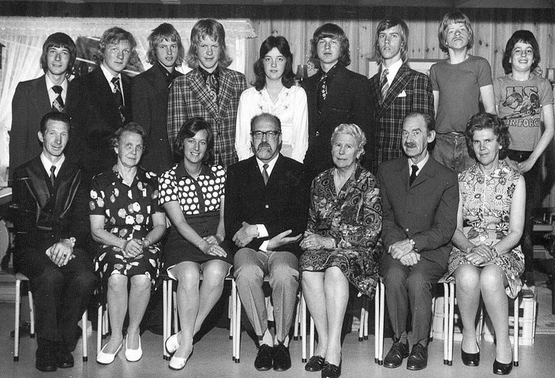 Sittende f.venstre vaktmester Martinius Kleven - assisent Karin Felberg - lærer Eli Nervik - bestyrer Per Sigmund Bjørndal - husmor
