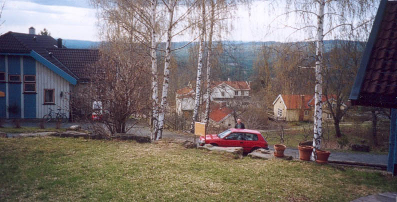 Solborg Landsby i forgrunnen. Her nede lå Alm skole.