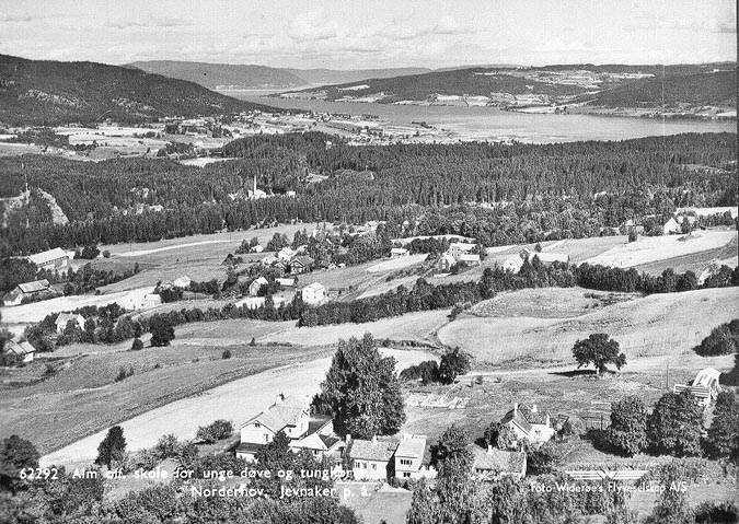 Utsikt Nordehov med Alm skole i forgrunnen.
