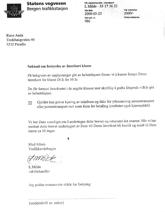 23.05.2000 - Statens vegvesen, Bergen trafikkstasjon: