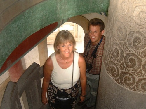 Margaret og Pablo har nådd toppen, 249 trappetrinn opp!