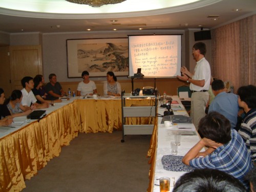 Det var meget tydelig at to-språklig-temaet engasjerer. Før det hele var ferdig, ble Ms. Wu An An takket på det hjerteligste av møtedeltakerne, og vi nordmenn var mektig imponert over hennes store kjennskap og forståelse av tegnspråk som eget språk. Hun brenner for saken. I morgen skal vi ha et møte med henne på kontoret til Amity Foundation og diskutere erfaringer fra de to siste møtedagene, og bli enige om hva som bør gjøres i tiden framover.