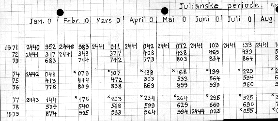 Julianske periode (antall dager i hver måned)