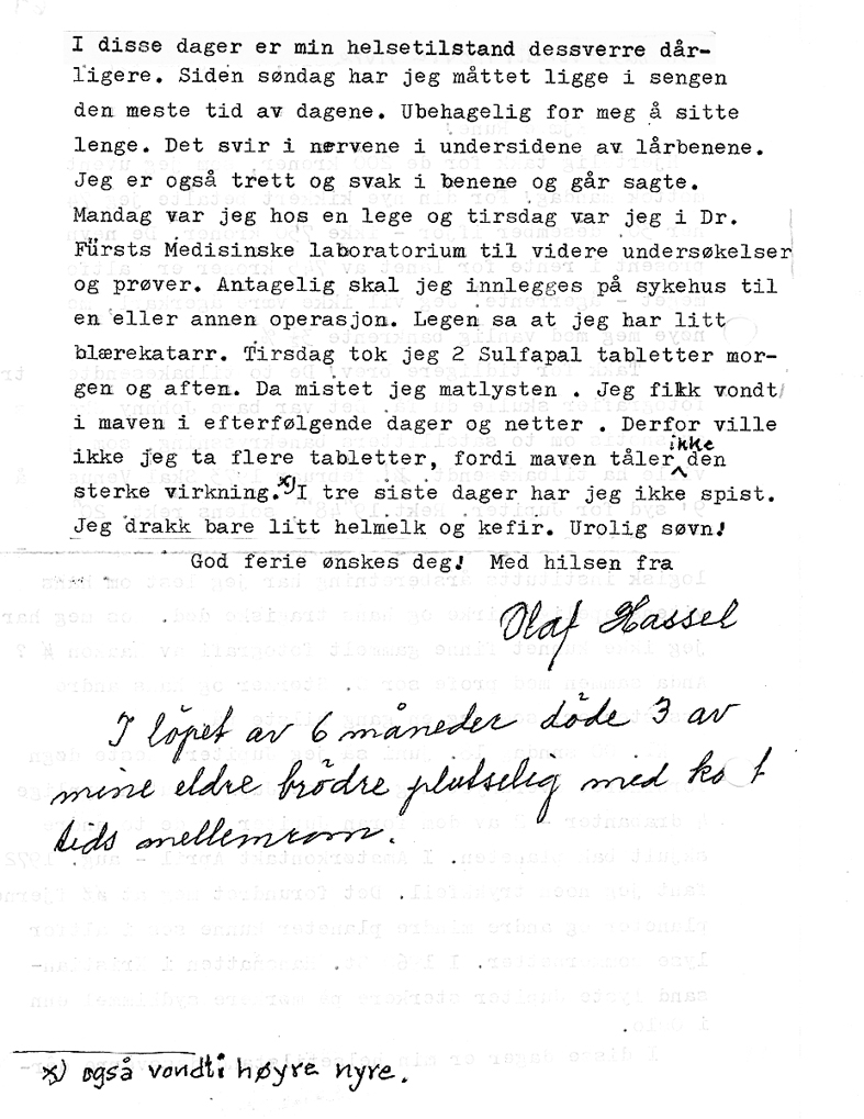 De to siste brevene fra Olaf Hassel