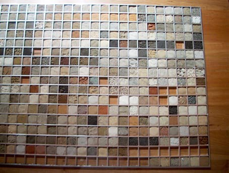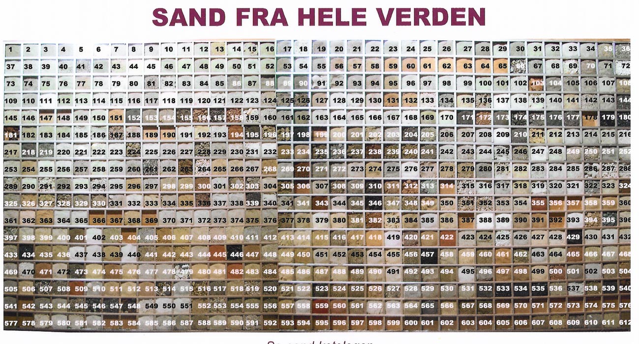 Ferdig 15. november 2003! 36x17 ruter = 612 ruter. Sand nr 1 starter øverst til venstre, nr. 2, 3, 4 osv. øverst mot høyre. Sand nr 612 slutter nederst til høyre. Forsiden sandsamling